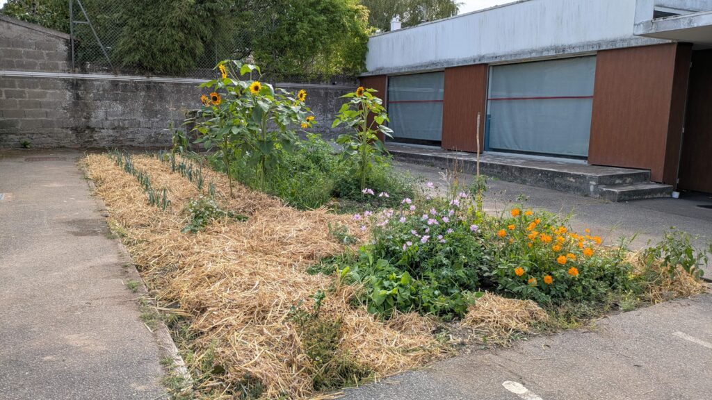 Les artichauts ont survécus à l’été et la sècheresse. les asperges ont l’air de se plaire sous les tournesols. Le potager est paré pour l’hiver avec un beau paillage bio.